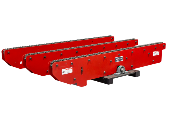 These modules can integrate chain sections in user-specified positions, or they can accommodate more sections to increase the resting surface. This ensures optimal contact between the pallet and the chains.